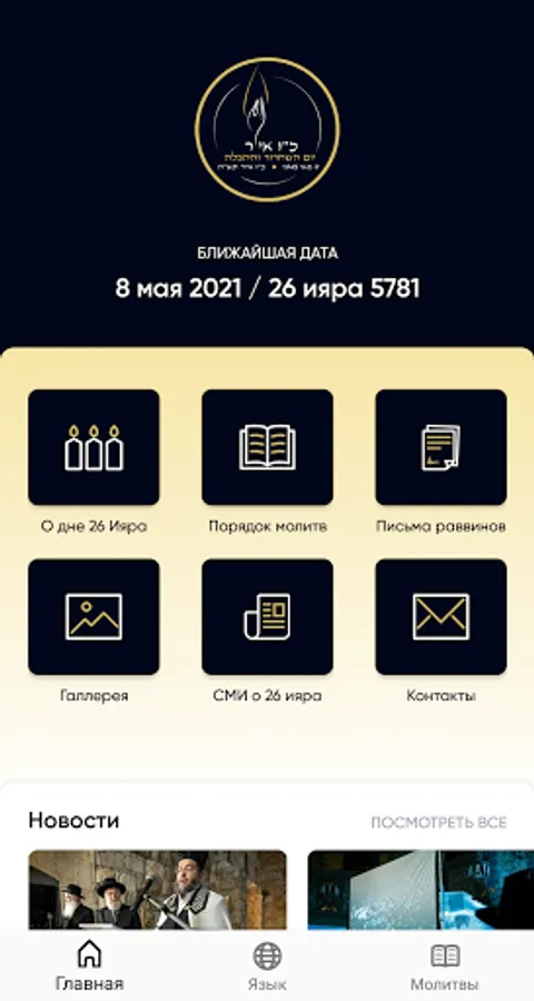 26 Iyar is a new Jewish holiday dedicated to the miraculous salvation of the Jewish people in 1945 from the threat of total annihilation. This holiday was established on the initiative of businessman and philanthropist German Rashbilovich Zakharyaev with the blessing of prominent rabbis. The application contains a description of the holiday, the order of prayers and up-to-date information about its celebration in your city or country.