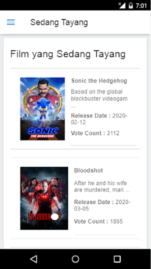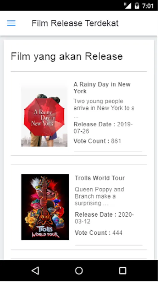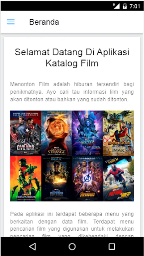 This film catalog application contains information about films that already exist, are being aired or will be released.