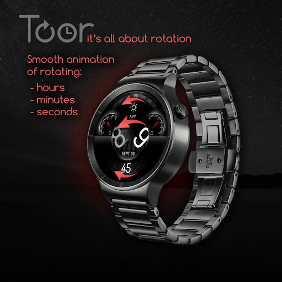 Toor Watch Face for Android Wear - Wear OS by Google – a brand new watch face with rotating hours, minutes and seconds, a must-have in every smart watch user collection