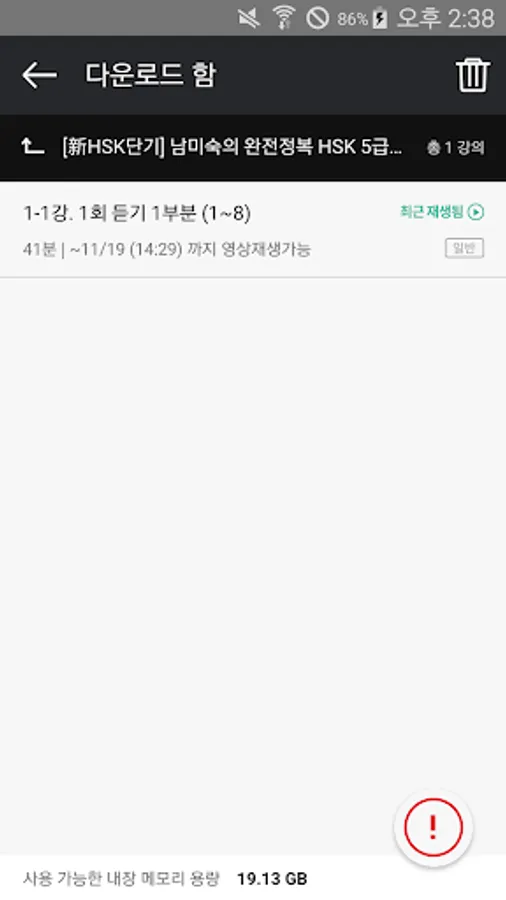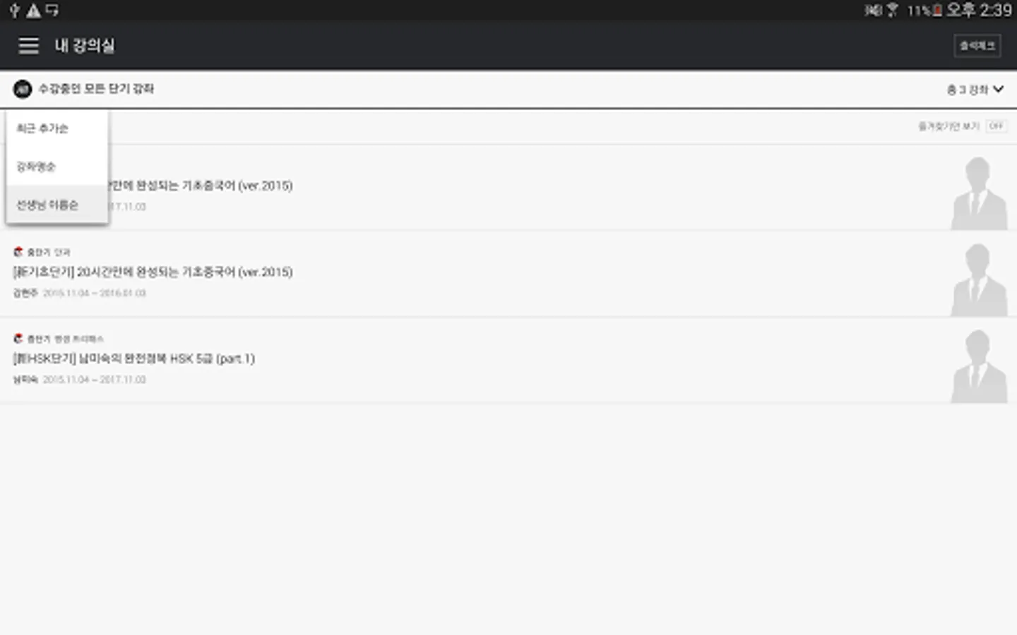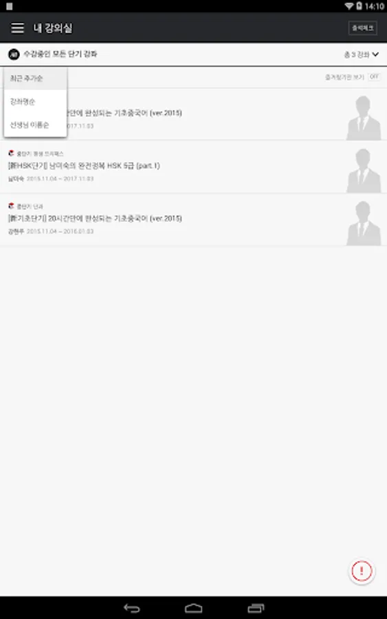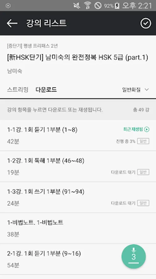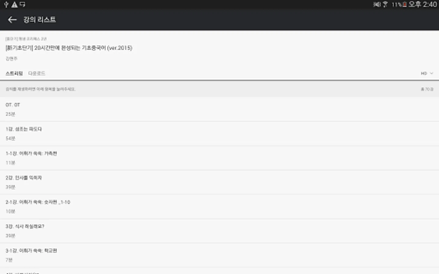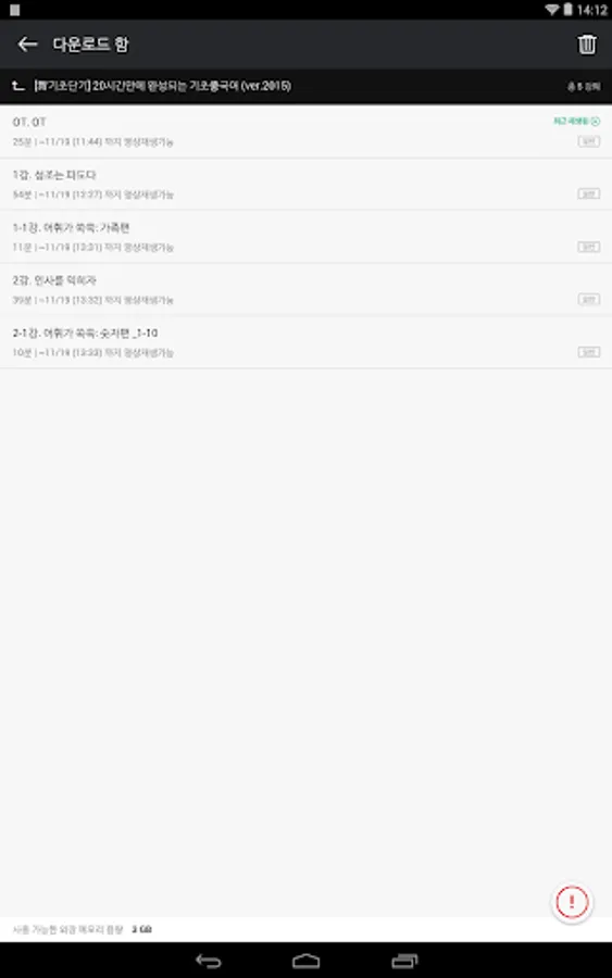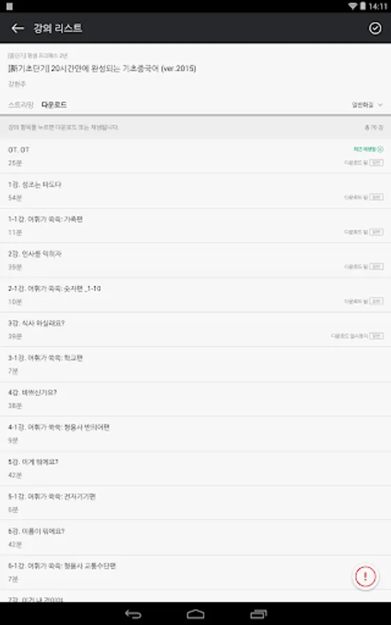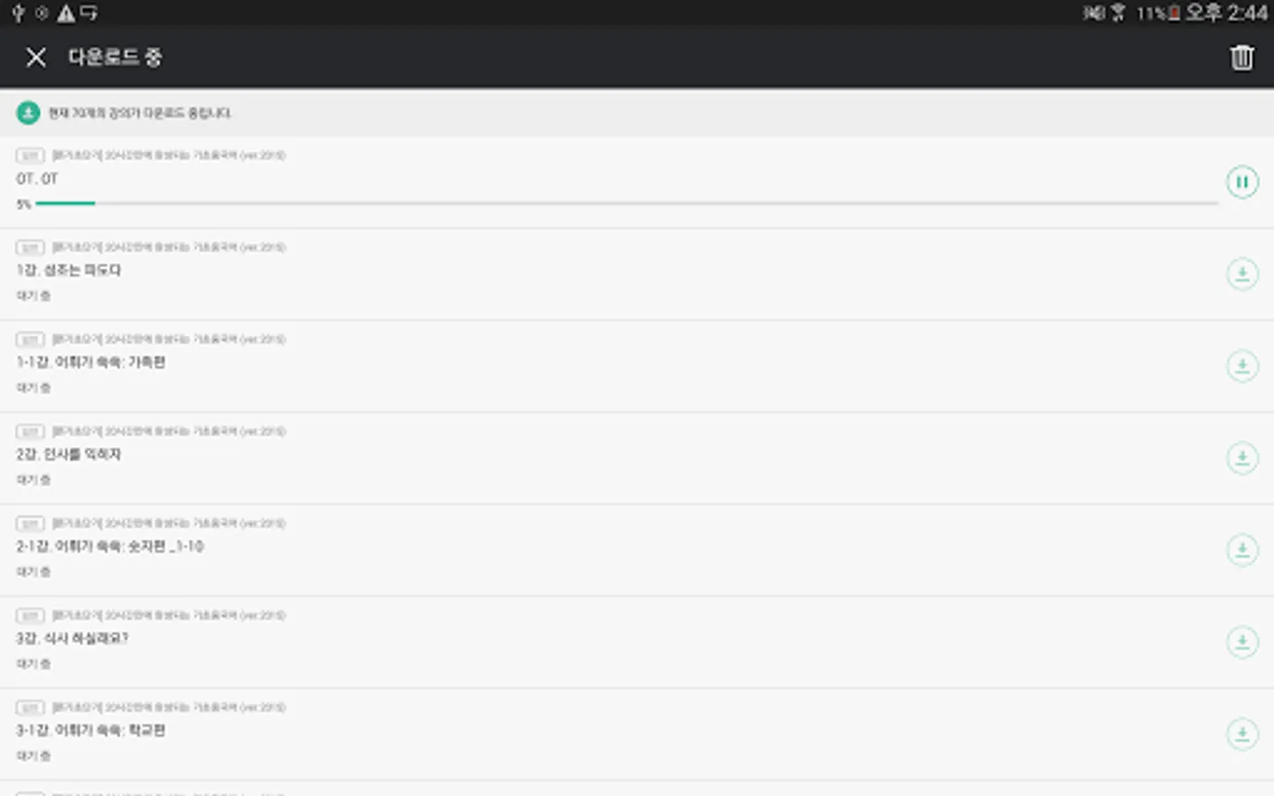 ※ If there are many downloaded lectures, loading may take a long time depending on the device specifications.