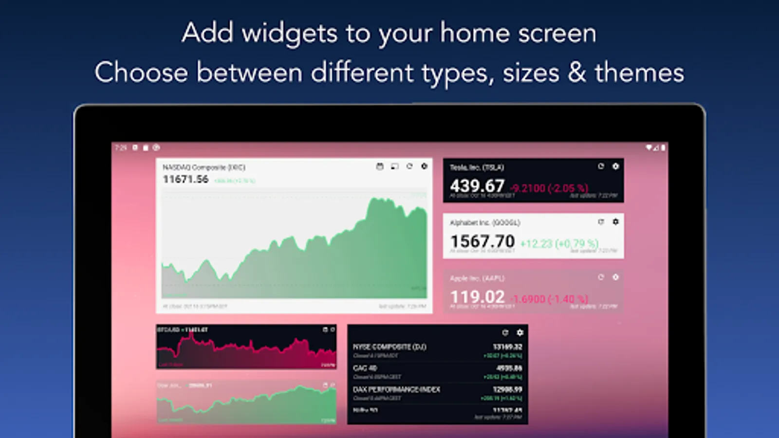 📱Add widgets on your home screen and keep an eye on your favorite stocks and cryptos in real-time!