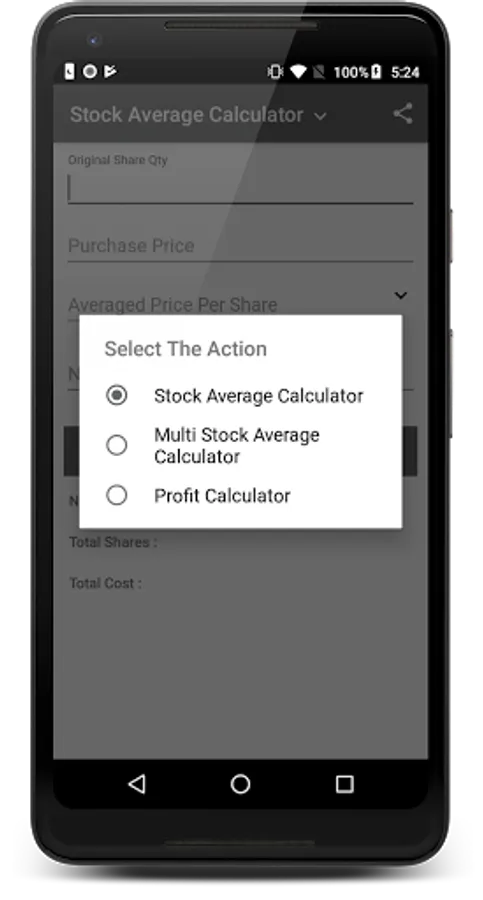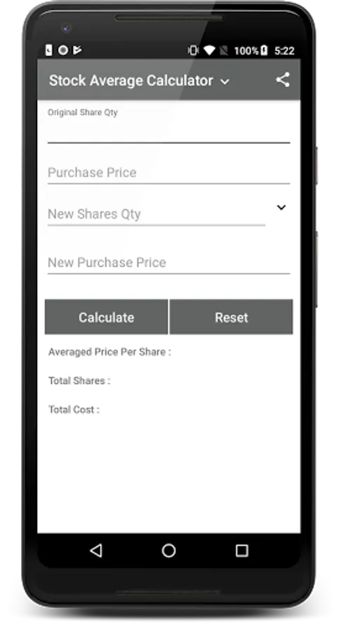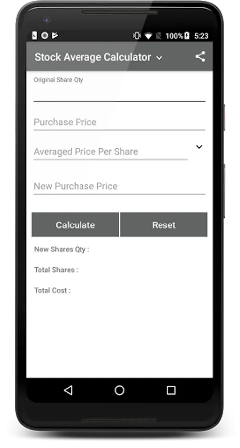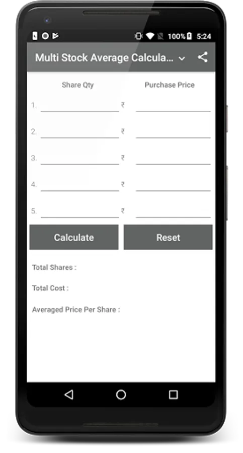 Example:- Suppose I have 100 shares of Xyz company price 100 after some time price down 80 and I want to average it to 90 prices so the app will give the new share buy quantity.