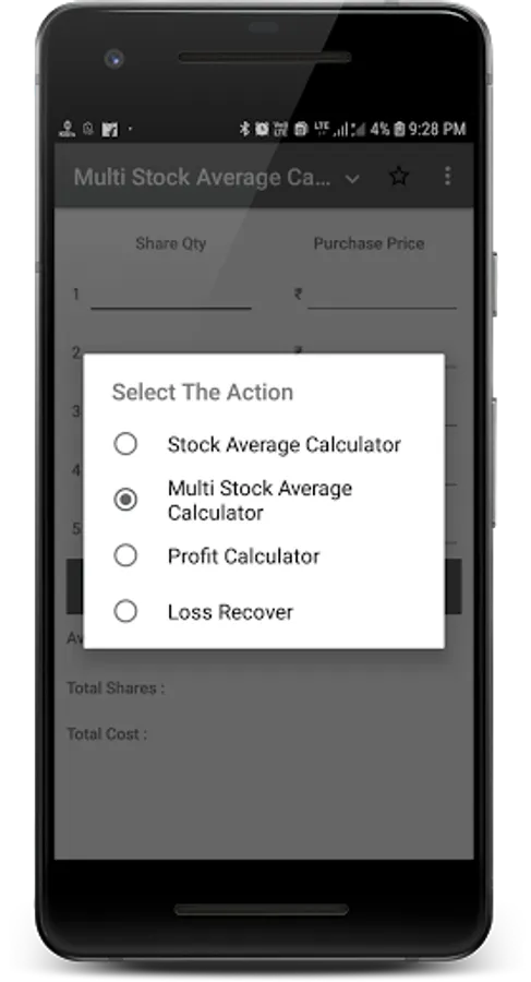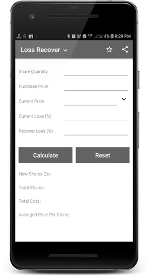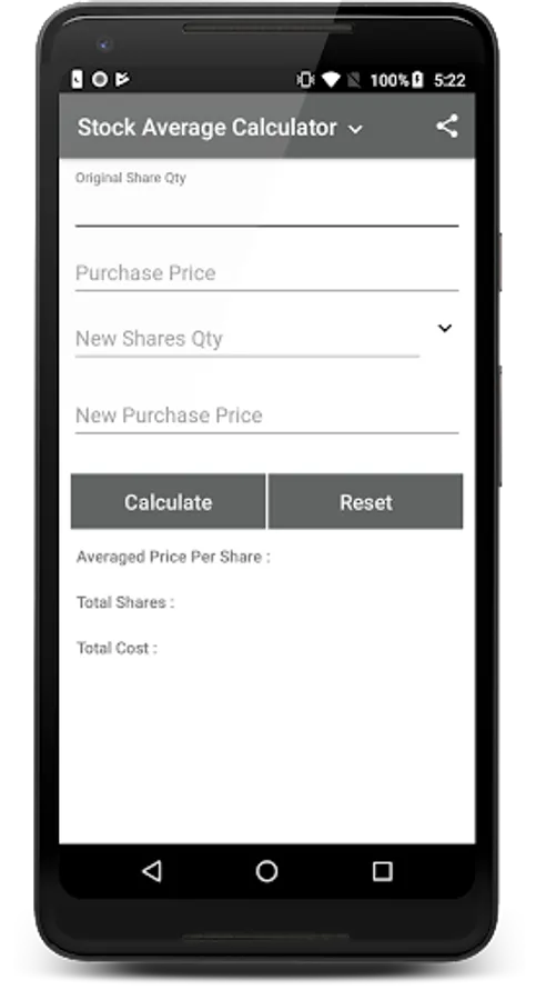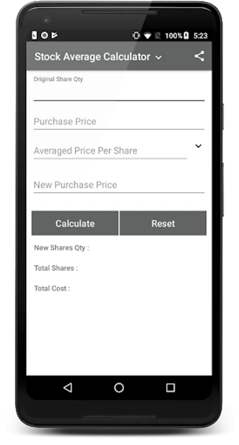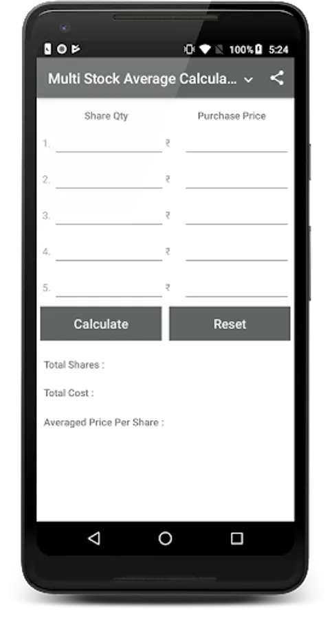 Example:- Suppose I have 100 shares of Xyz company price 100 after some time price down 80 and I want to average it to 90 prices so the app will give the new share buy quantity.