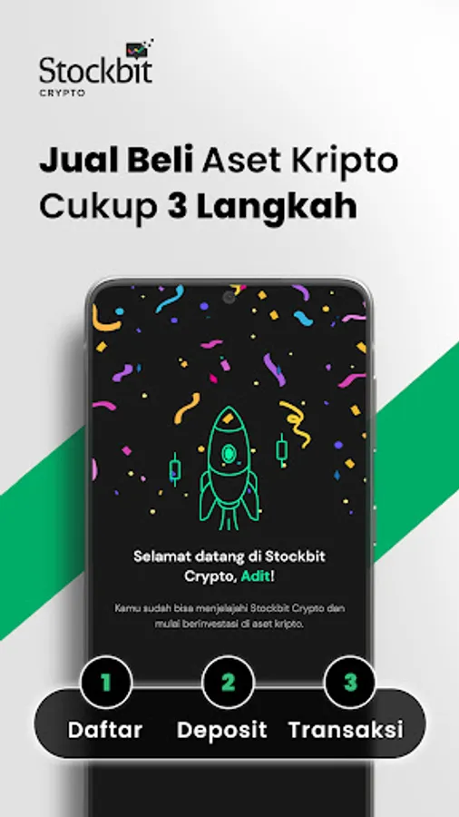 Kamu dapat menikmati pengalaman bertransaksi di Stockbit Crypto hanya dengan 3 langkah mudah. Daftar akun Stockbit Crypto dan ikuti proses verifikasi data, deposit dengan metode pembayaran yang tersedia, dan pilih aset kripto favorit yang kamu inginkan.