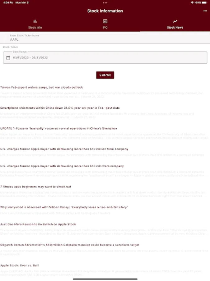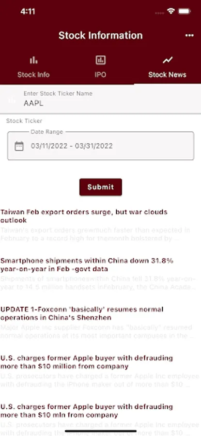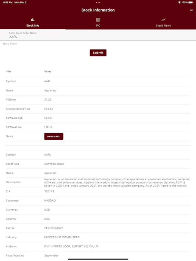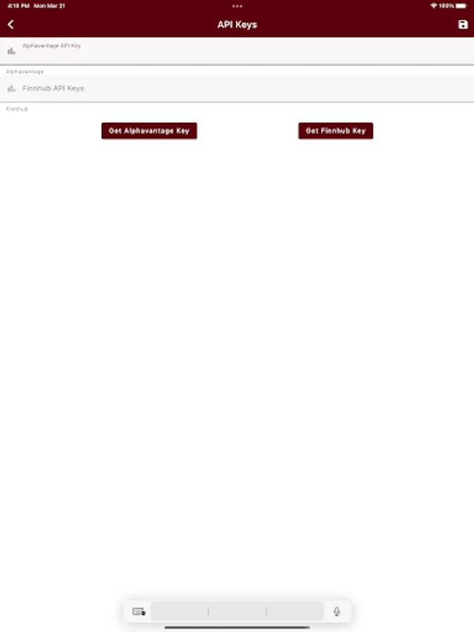 The App uses 2 API's that you'll have to register with: Alphavantage & Finnhub.