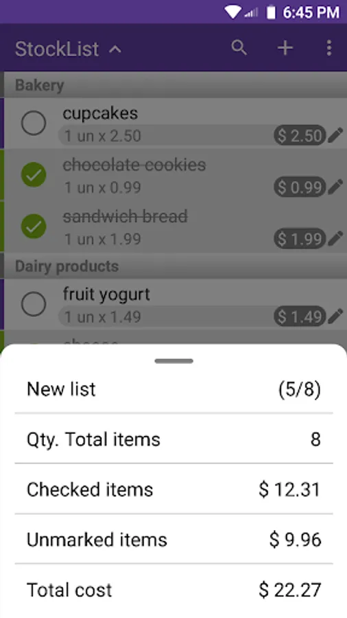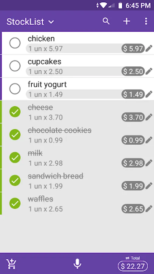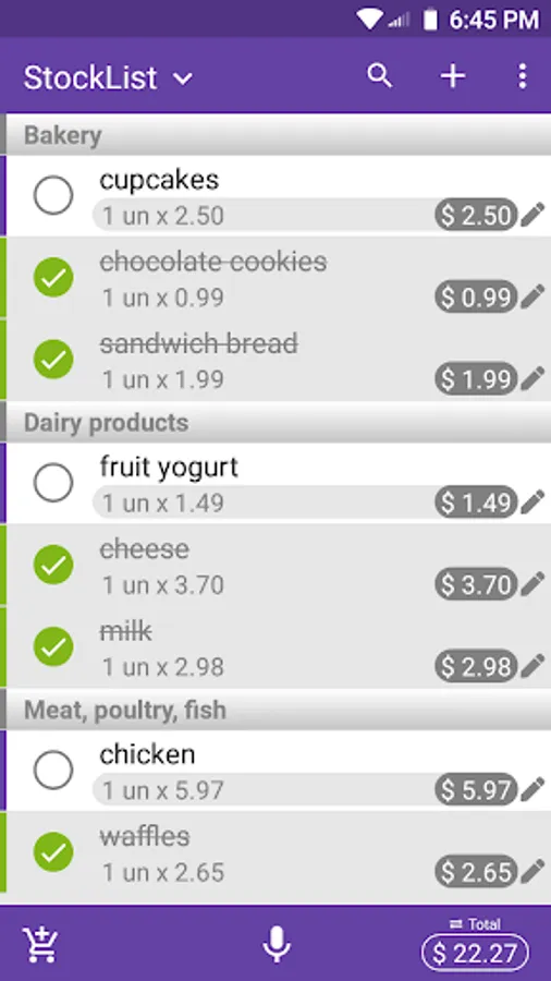 StockList is the simple and easy shopping list manager app. Create and manage your shopping list, add items using the item catalog or by voice command. You can add and edit price, unit, quantity and order items by category and alphabetically. The total purchase amount is automatically calculated plus: