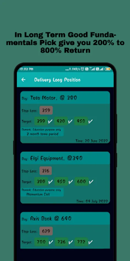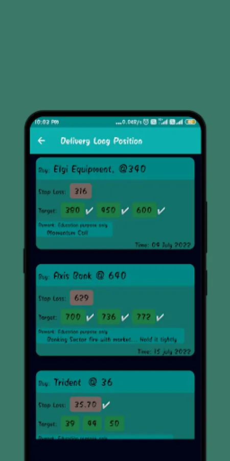 this app very use full for who have no time for research, technical analysys, how to find support/resistance and proper stoploss/targets. this is very helpful to generate side income from stock market.