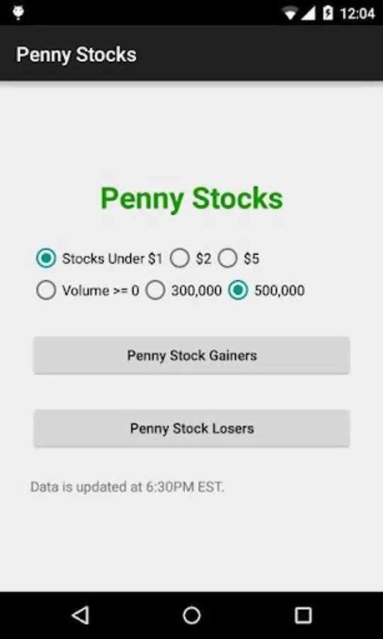 Penny Stocks allows a trader to find daily top penny stocks gainers and losers. This penny stocks app does not suggest which penny stocks to buy, it lists penny stocks to watch. You will need to decide for your own which penny stocks to trade.