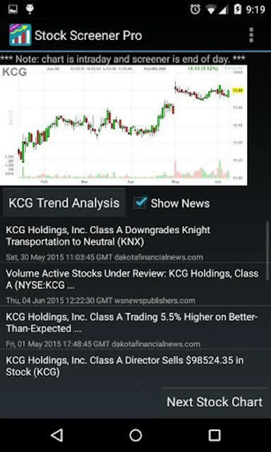 Our stock screener uses stock charts from Finviz. The stock charts uses intraday data which is delay by 15 minutes.