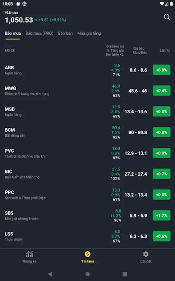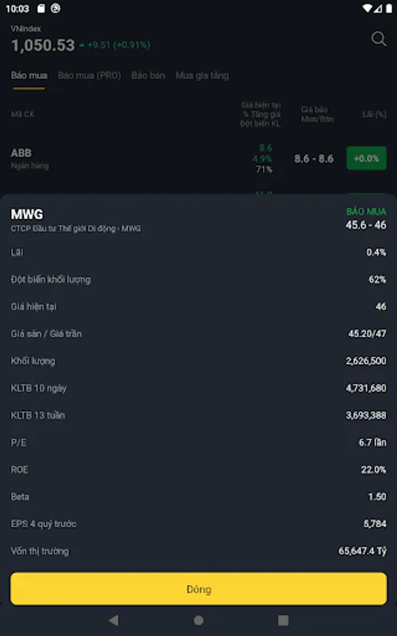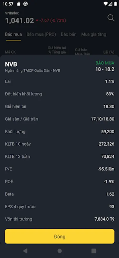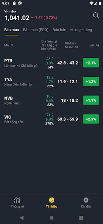 Ceiling Stock is an automatic system that provides indicators for buying and selling stocks on the Vietnamese stock market. The indicators are calculated based on algorithms that combine technical and fundamental analysis, and are automatically updated in the trading session.