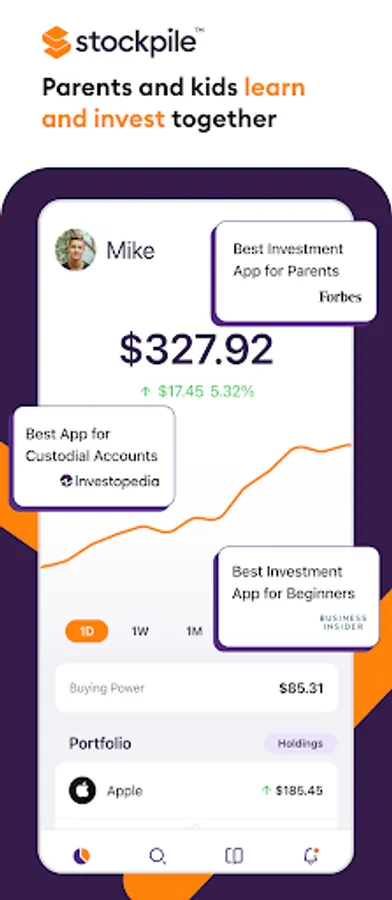 Buy stocks and crypto on the investment app made for families. With Stockpile, kids, teens, and parents can start investing together in a way that fits their needs. Kids can learn about stocks and crypto investing by experiencing it firsthand with as little as $1. Parents can supervise and approve investments, making it the perfect kids money app. Parents can also invest for their kids’ futures or themselves with over 30 cryptos and 4000+ stock and ETF options.