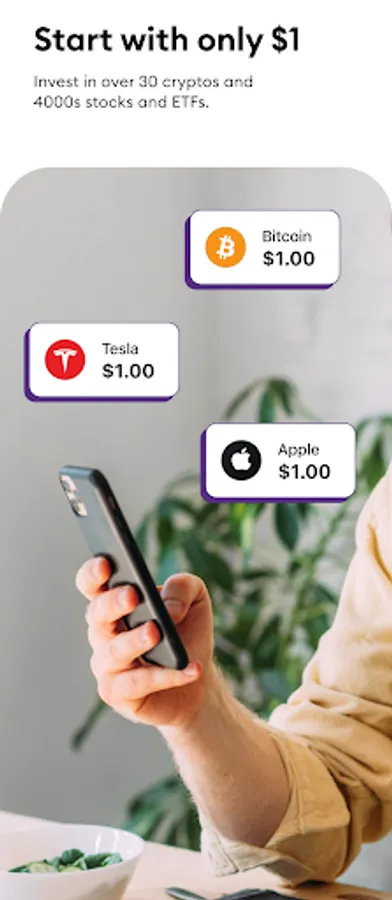 • Buy stocks or crypto with as little as $1.