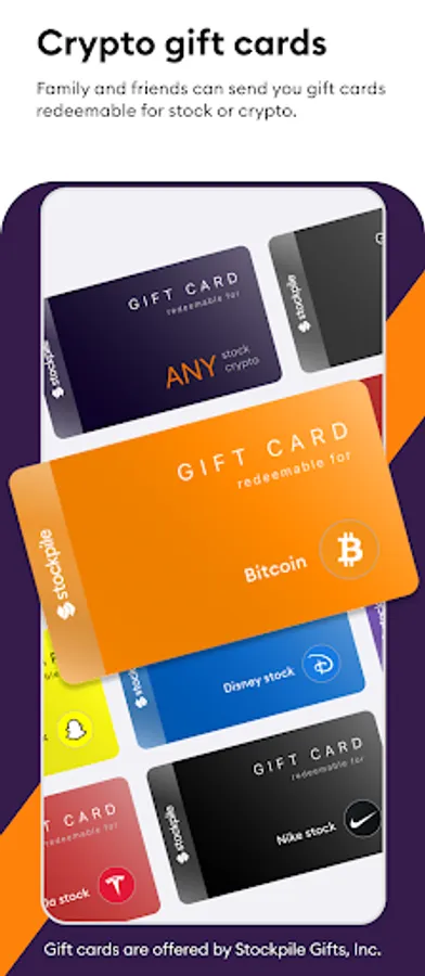Stockpile gift cards are issued by Stockpile Gifts, Inc. A Stockpile gift card has a fixed value and is redeemable for stock or cryptocurrency if you hold an investment account with Stockpile Investments, Inc. It is not a stock, security, or cryptocurrency, or a recommendation to buy any specific stock, security, or cryptocurrency.