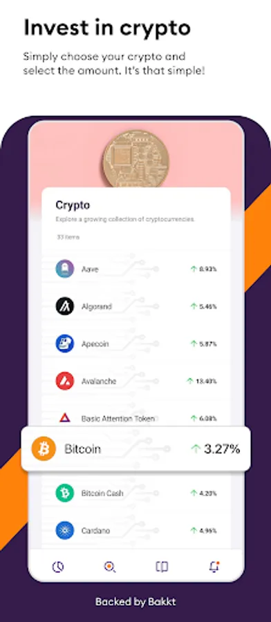 • Buy crypto by simply choosing your cryptocurrency and selecting the amount.