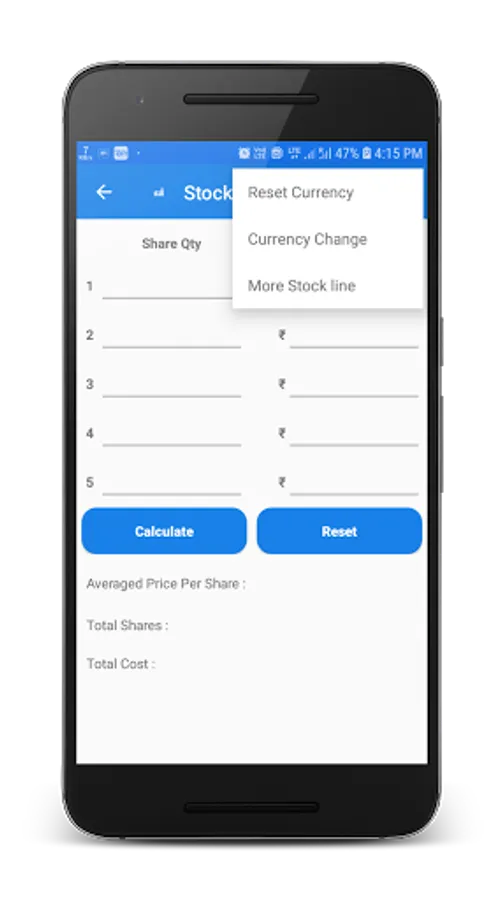We change the stock line, currency in the stock average calculator and save the stock for future use purposes.