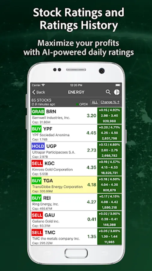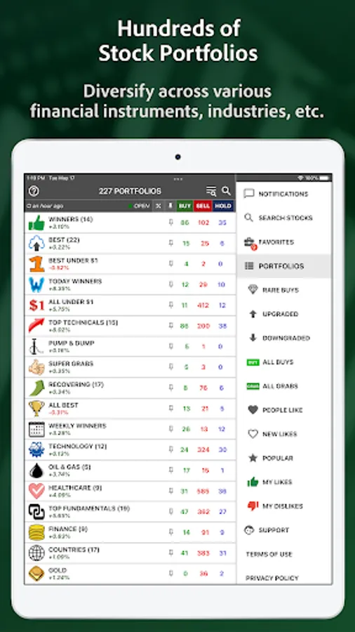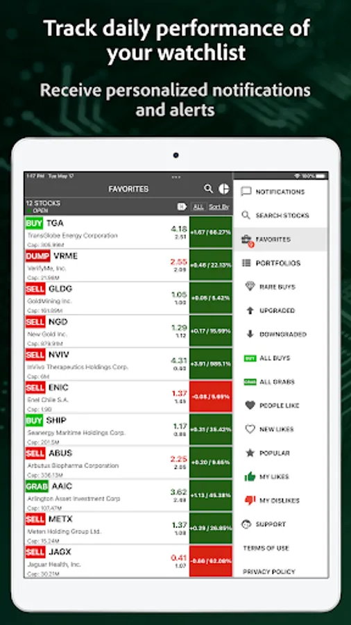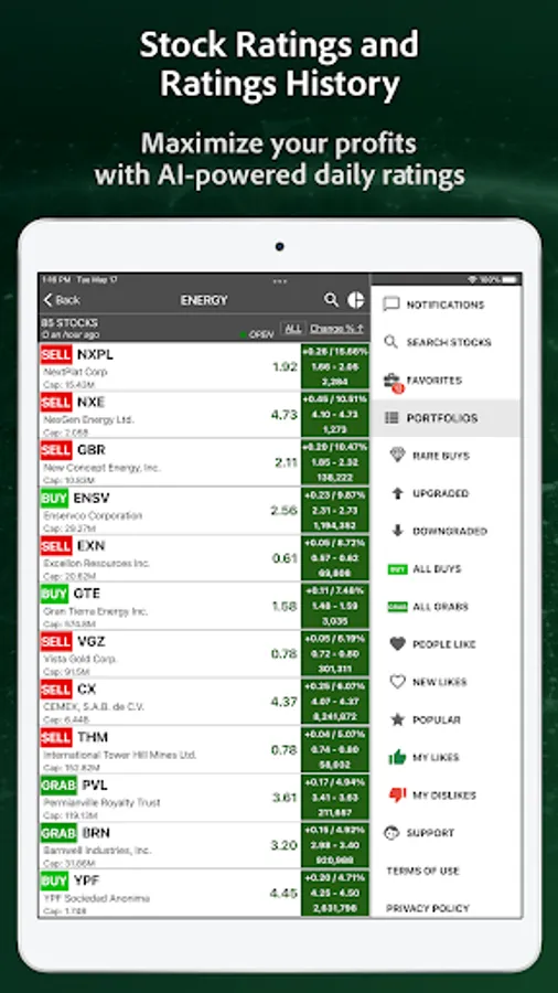 • Each stock receives a Grab (Super Buy), Buy, Hold, Sell, and Dump (Super Sell) rating updated daily.