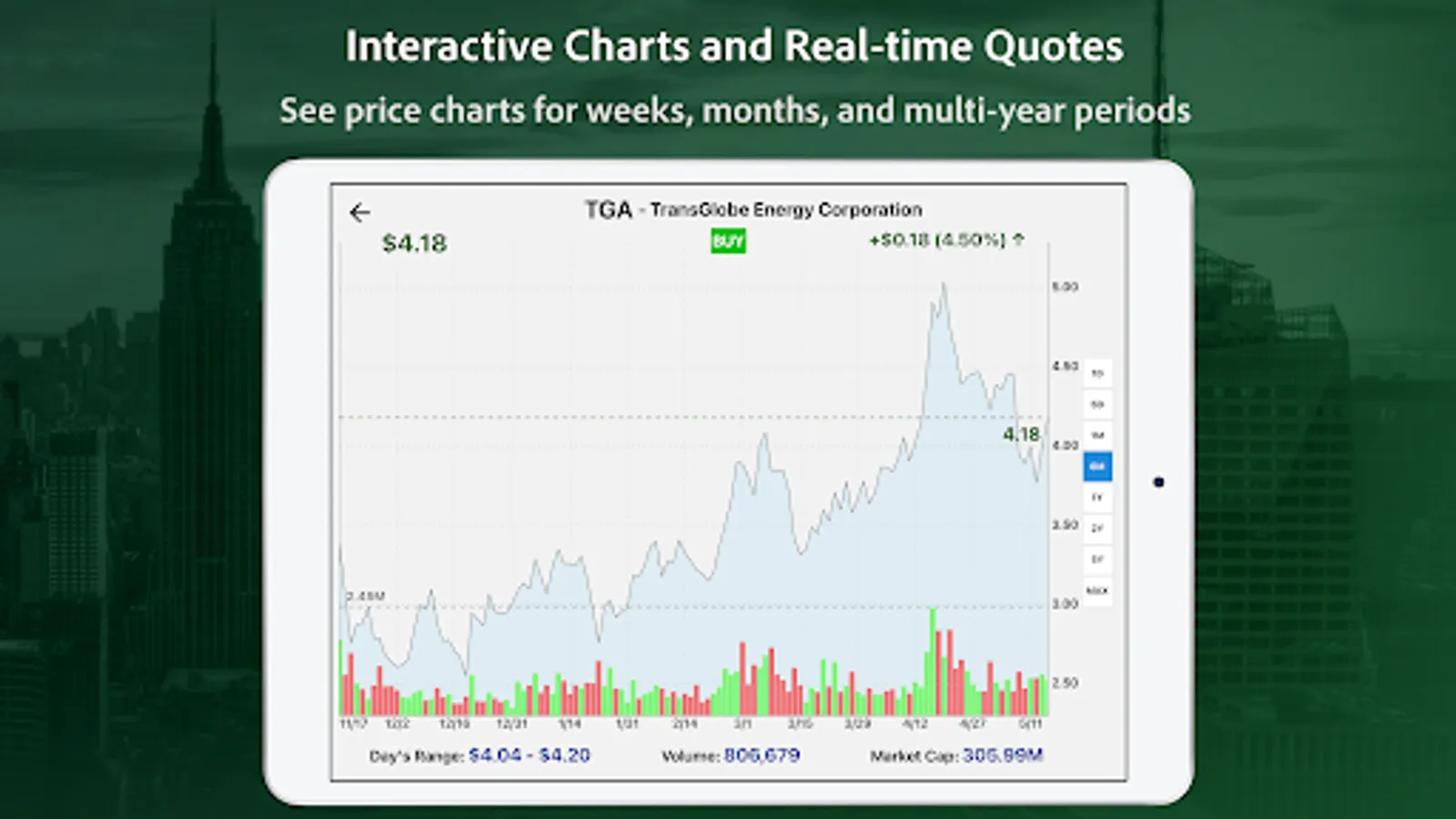 • Instantly search 1,200 stocks by company name or stock ticker to find your favorite stocks.