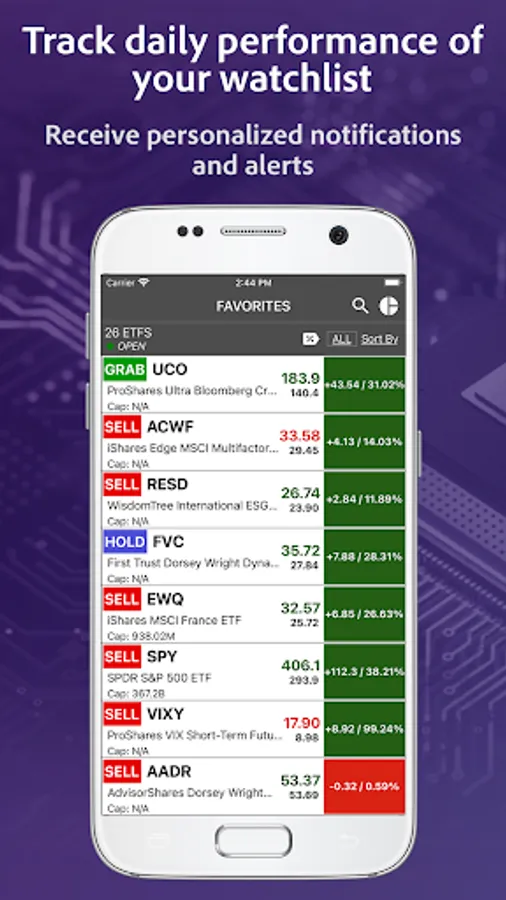 • Color-coded sparklines allow you effortlessly track ETF performance throughout the day.