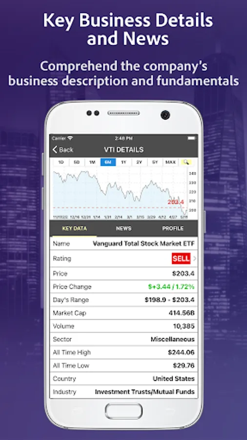• View price quotes, daily trading range, price change in dollars and percentage, net assets.
