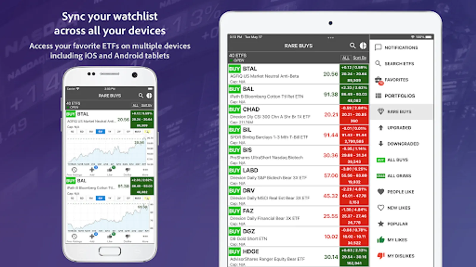 • Use ETF Investment Trading Tracker App on Google Pixel, Samsung Galaxy S, Galaxy Note, and Galaxy Tab.