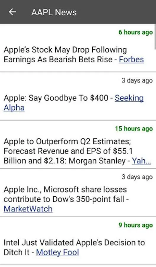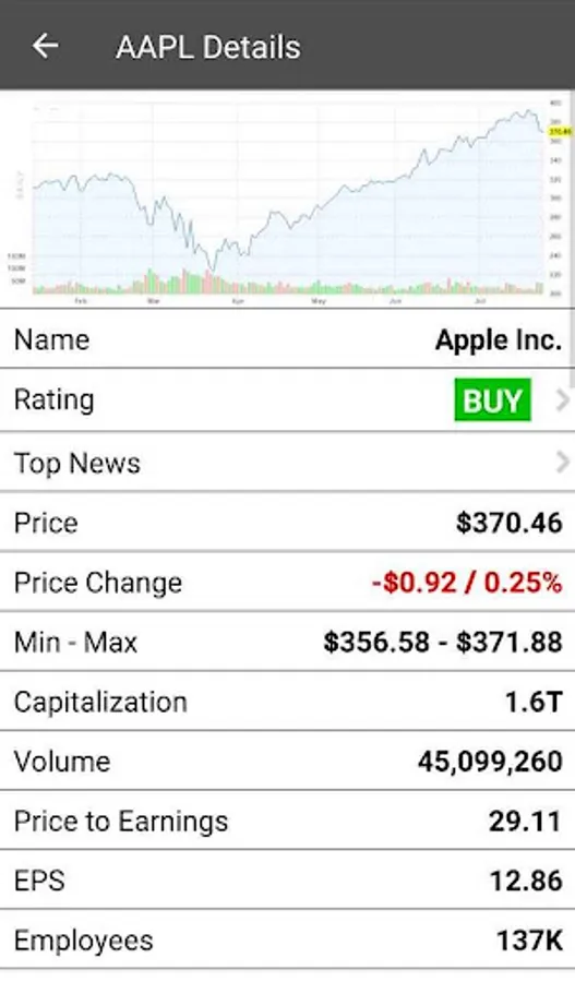 • Read Top Stories automatically selected by app algorithms for the latest news for each stock.