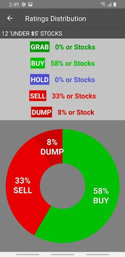 • Each stock receives a Grab (Super Buy), Buy, Hold, Sell, and Dump (Super Sell) rating updated daily.