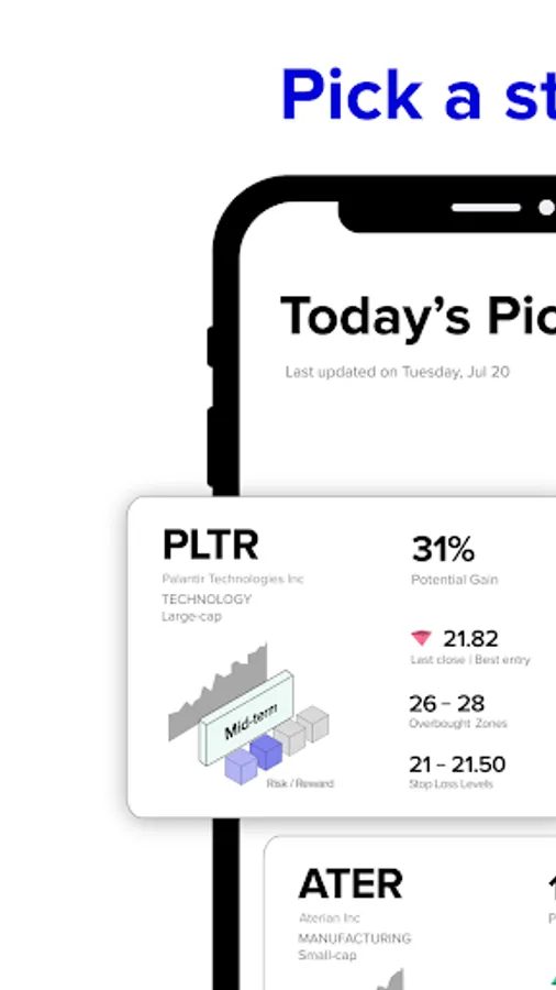 Everyday, our AI-generated feed gives you a variety of trades to choose from depending on your mood and risk-tolerance. Consider suggested stop loss levels and overbought zones as price targets when making a trade in your favourite app.