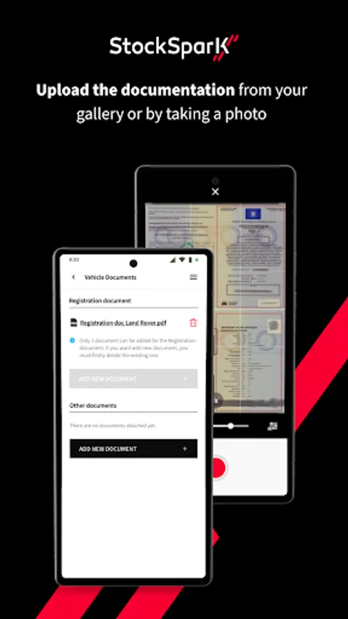 - Upload registration document and any other documentation from the gallery or the camera