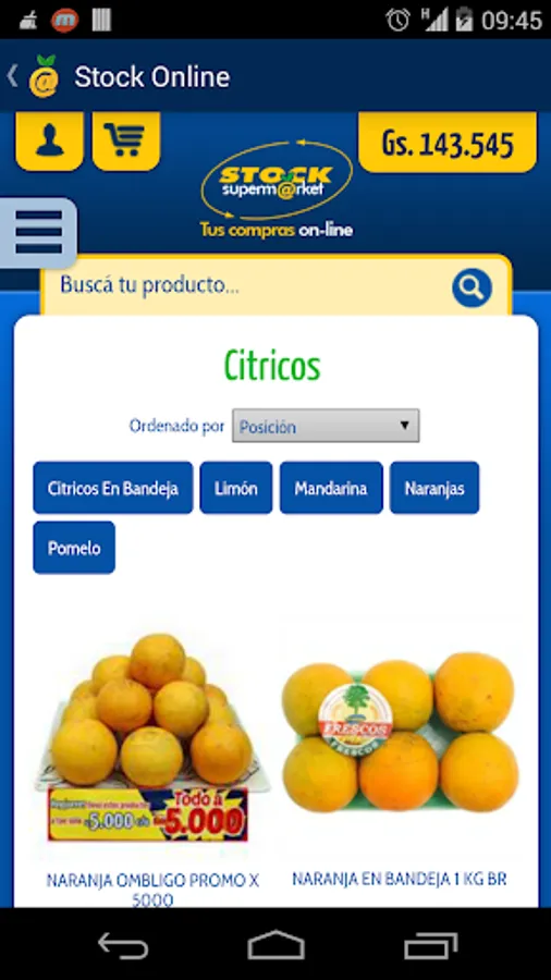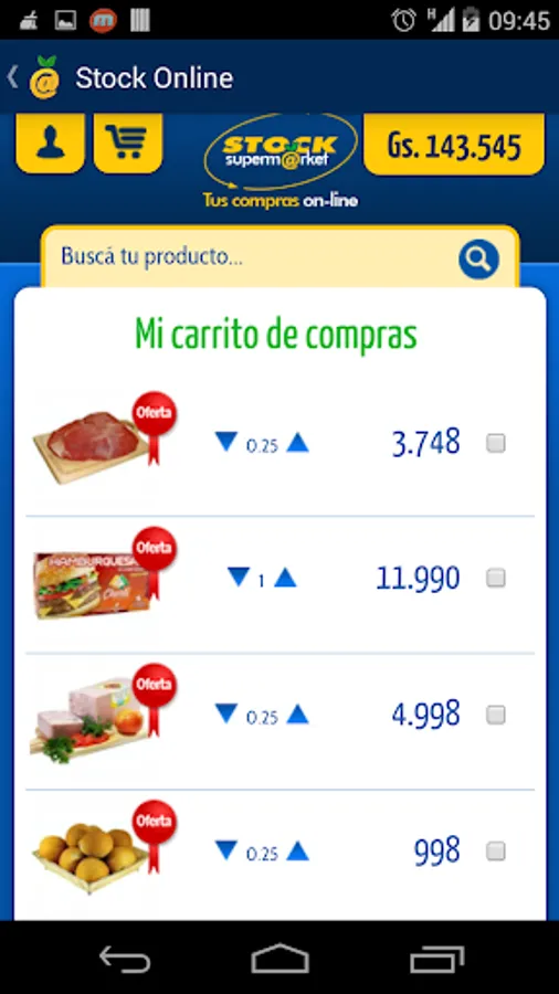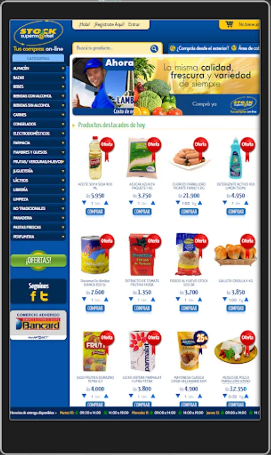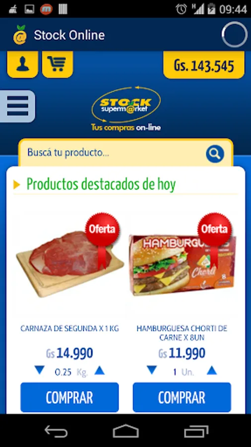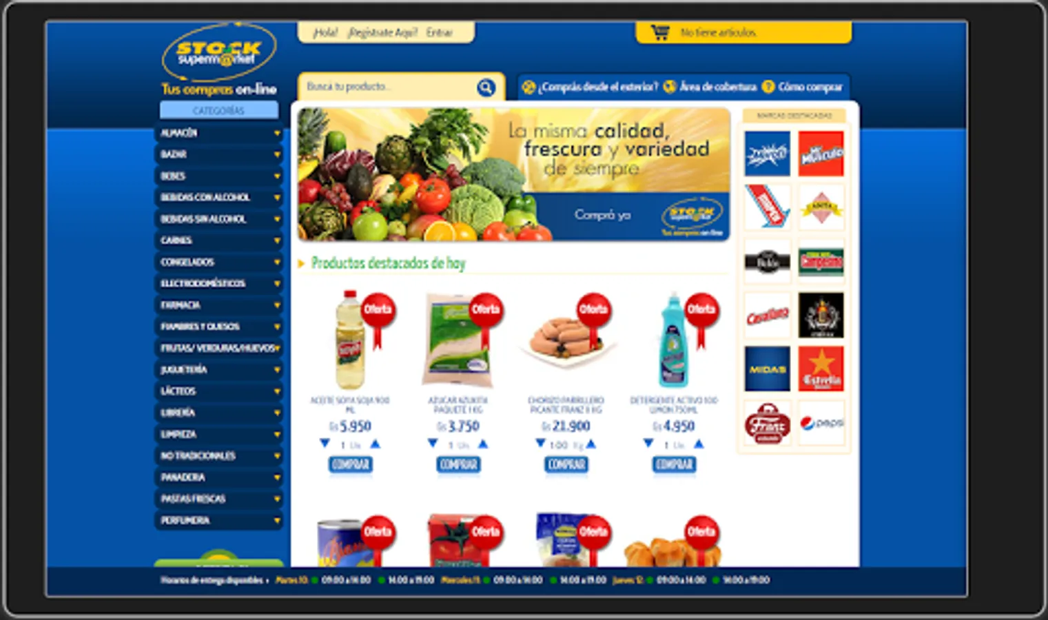 With Stock Stock Supermarket of Supermarcados you prune navigate the menu different sectors where our products are loaded with their respective image, this way you'll know what you're buying. In Stock Supermarket the purchase method is to load the products to the cart as if you were inside the place, for this you only have to enter a numeric quantity or use the charger unit and the product will be automatically added to your shopping cart.