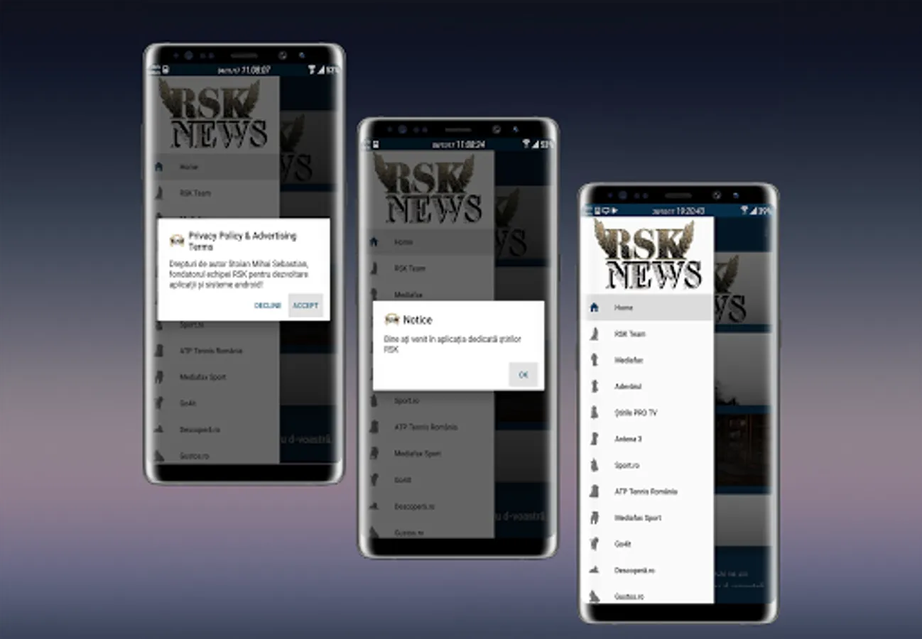 * RSK News offers a relaxing solution by listening to international radio stations such as "Best Radio" and the national ones: Romania News, Pro FM, Best Radio in Greece, Digi FM, National FM ... etc.