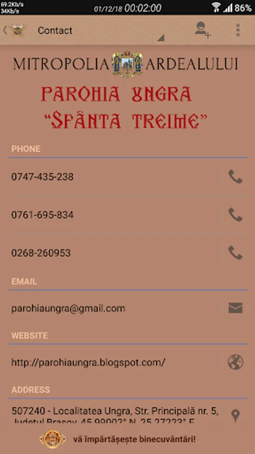 The application contains the latest news about the Ungrate Parish, prayers, chapters, Orthodox calendar from 2018 to 2020. The philanthropic activity of the Parish is presented and not only.