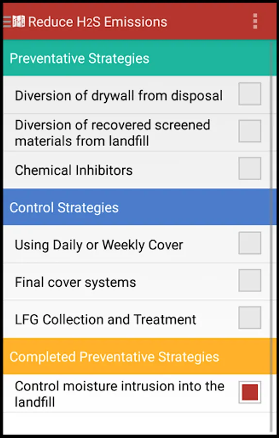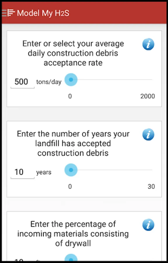 The H2S application developed for EPA, is a software mobile application that estimates the gas generated (usually methane and carbon dioxide) at Construction and Demolition Debris (C&DD) landfills with a focus on H2S production. In addition, the application also aids landfill owners and operators by providing best management practices for controlling H2S generation.