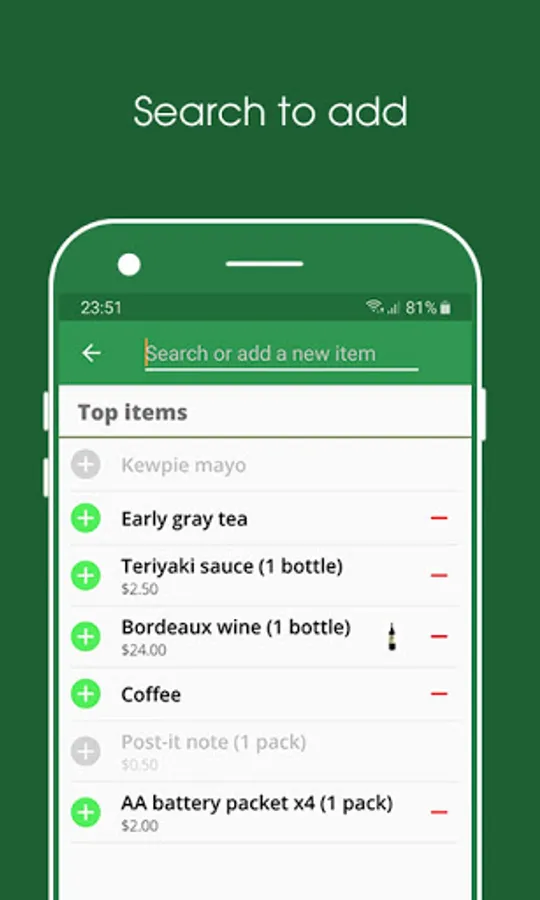 👉 Instorelist tells the total while planning a list and the total of items in your basket base while shopping. So you'll never have to return a few items when you get to checkout and find out you're $100 over budget. You can update product price while shopping and it's saved in your shopping catalog for the next shopping. Because price of a product at a store don't change much over-time and most purchase is repeated, you'll soon fully control budget of each shopping with very less effort.
