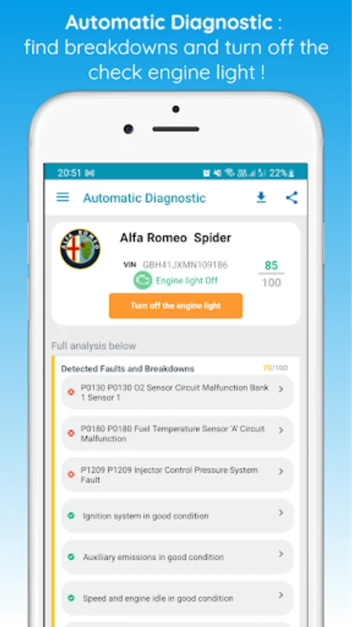 Diagnose your car, find breakdowns and turn off the check engine light !