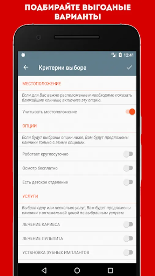 You can set convenient search criteria and in a matter of seconds we will select the best clinic for you!