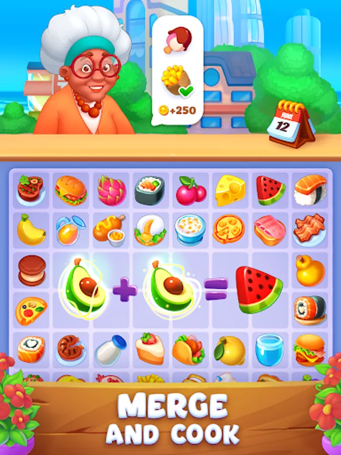 What happens if you merge avocado + avocado? Burger? No, watermelon, of course! How to do that? Join our funny and exciting merge game “Merge & Cook”! Help the main hero to open her restaurant chain! Attractive cooking games are waiting for you!