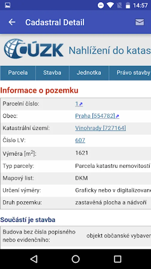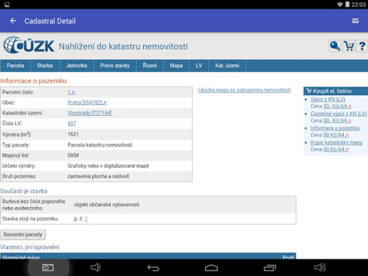 Map and information from Czech cadastral office available directly in a field according to a location context. Application makes possible to show cadastral maps (ČÚZK).