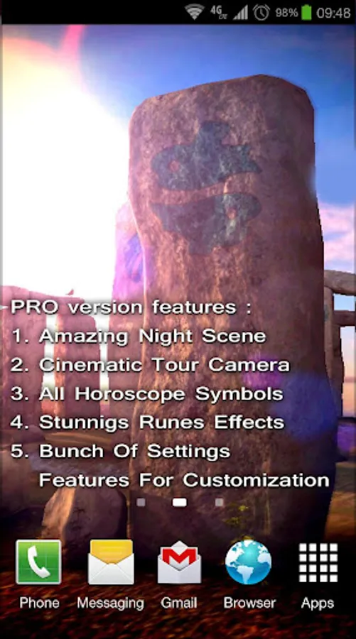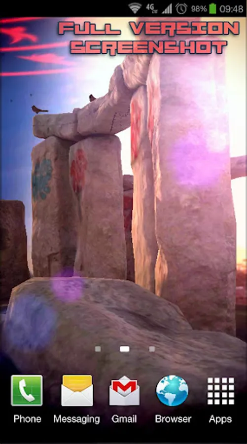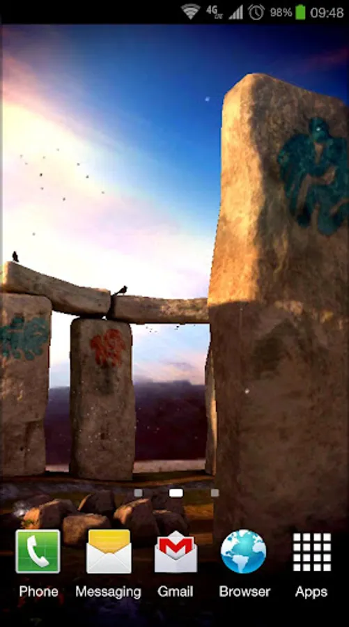 Installation: The main screen (long press) → Live Wallpaper →3D Stonehenge FREE lwp