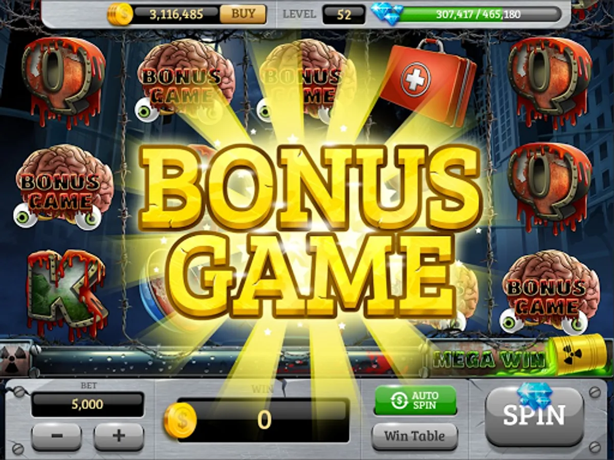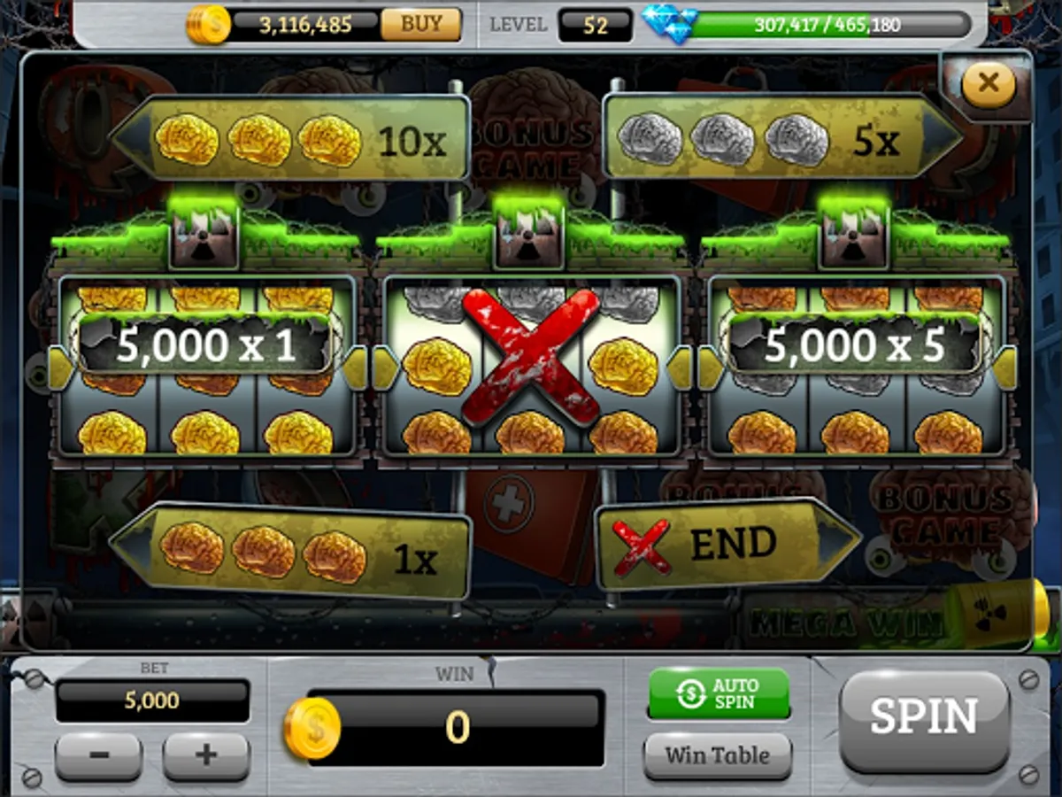 * Crazy Slots like zombies, brains, toxic barrels, molotovs and a lot more!