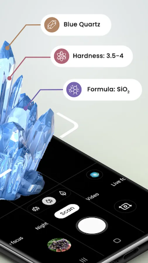 This mineral and rock identifier scanner is made for geologists and geology students that need help in the day to day identification of minerals, but it may also be interesting for normal people when it comes to learn more about mineralogy and how minerals are identified also The gemstone identifier camera app uses different attributes to help you identify minerals.