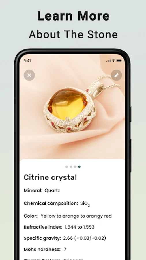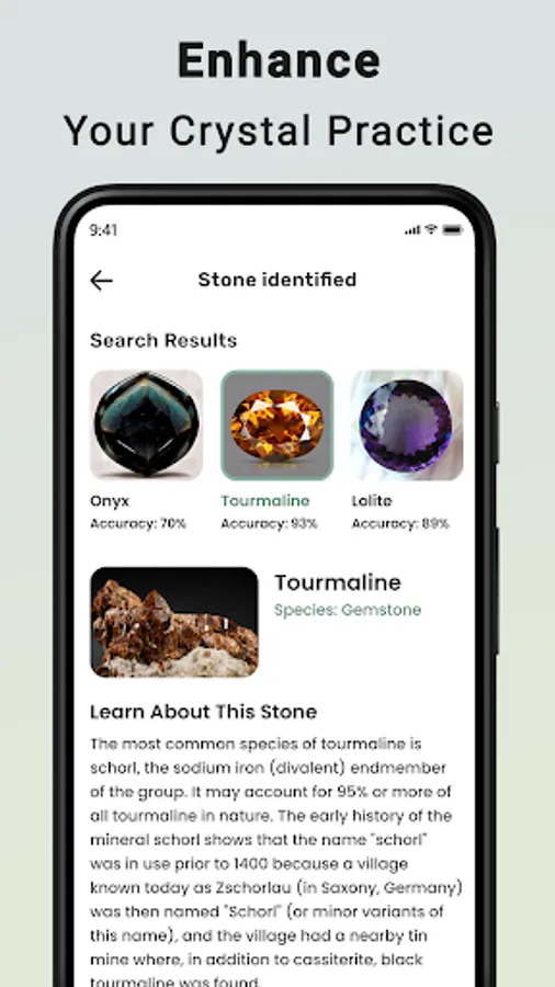 Stone identifier with all the relevant information with an image