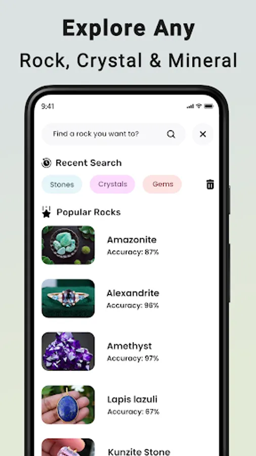 Rock identification, Crystal identifier has gotten easier with the Rock identifier stone scanner App. Simply take or upload a picture of your rock, and Rock identifier stone scanner can help you identify it in seconds including gem stone identifier.