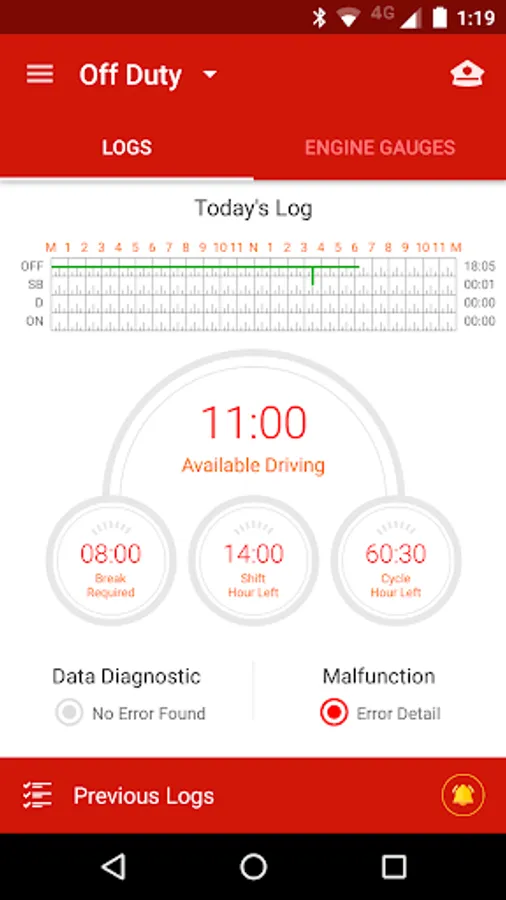 Track your current 24 hour HOS activity, view logs for the last 30 days, check how much driving time you have left and change the Duty Status as you work. This free EZ-ELD Driver App from Stoneridge connects to the EZ-ELD device in your truck via Bluetooth.