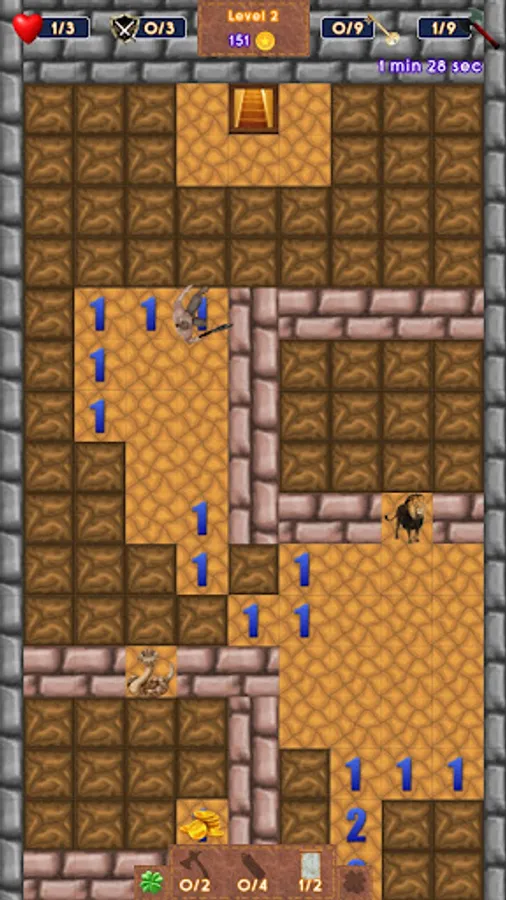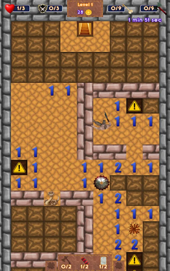 It is a logic minesweeper puzzle game with a bit of randomness, so make sure to carry extra shields in case you step on a trap