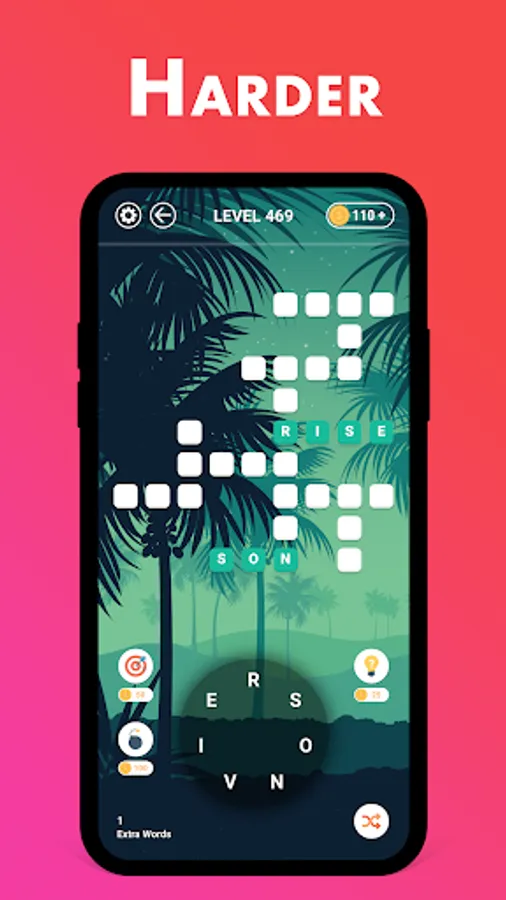Stuck on a hard level? Use one of the power-ups to show one or multiple letters on the game board.