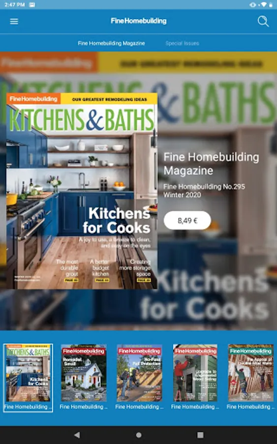 SUBSCRIPTION PLANS ARE AVAILABLE. Download the Fine Homebuilding app, then subscribe or buy issues individually. If you are currently a print subscriber or paid online member, you can get access to digital editions FREE -- absolutely no extra cost. Simply sign in with your customer number or member email in the Settings tab.