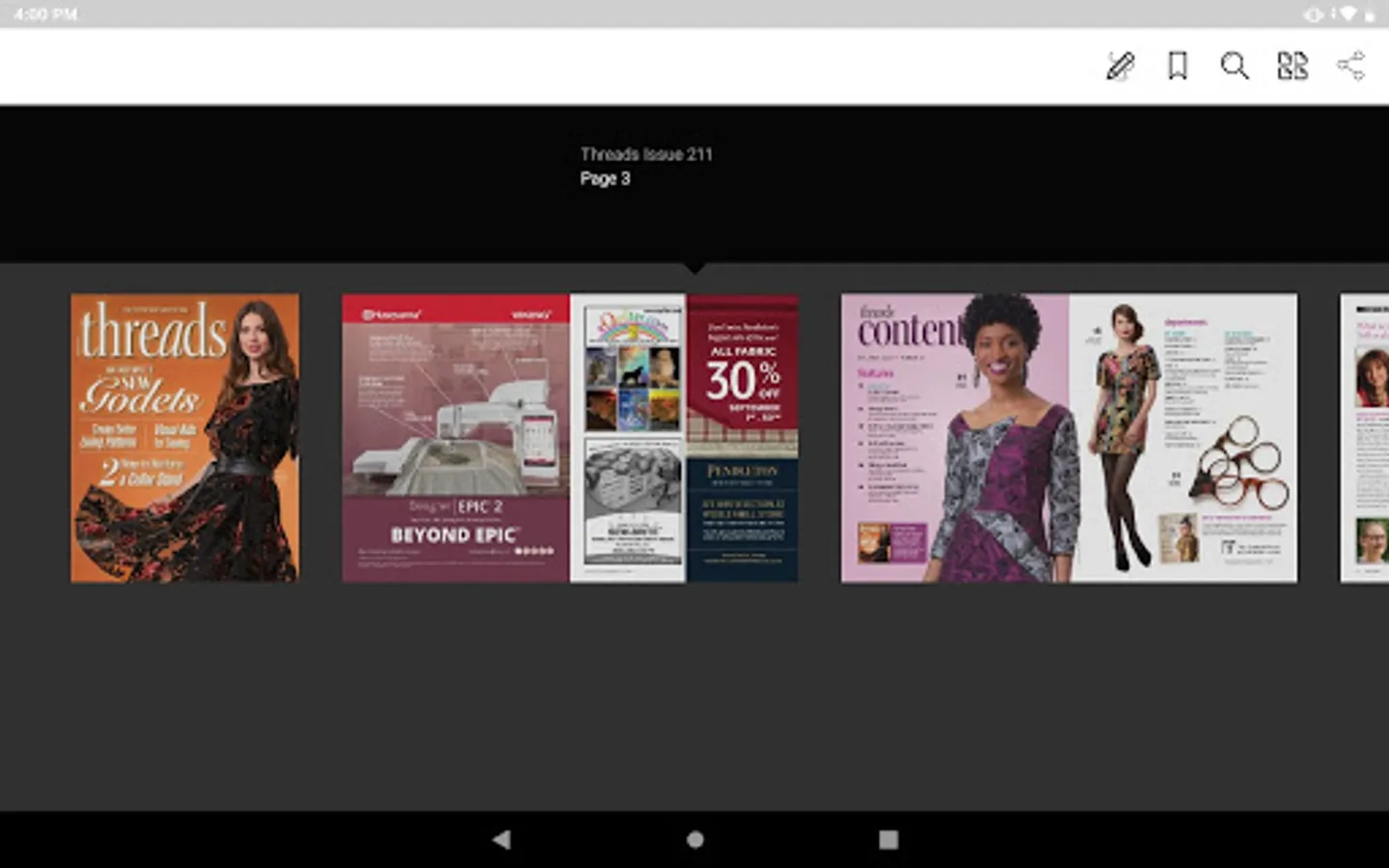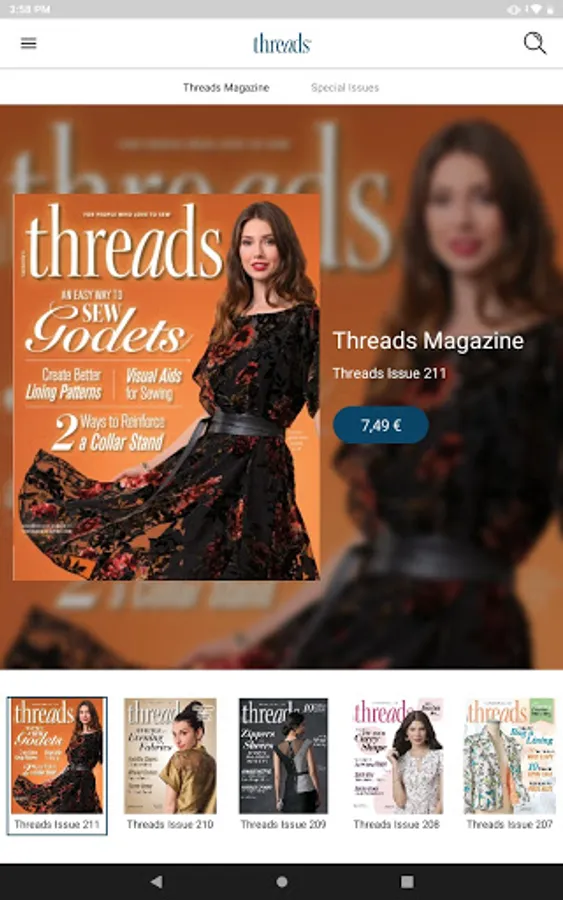 SUBSCRIPTION PLANS ARE AVAILABLE. Download the Threads Magazine app, then subscribe or buy issues individually. If you are currently a print subscriber or a paid Threads Insider, you can get access to digital editions FREE -- absolutely no extra cost. Simply sign in with your customer number or member email in the Settings tab.