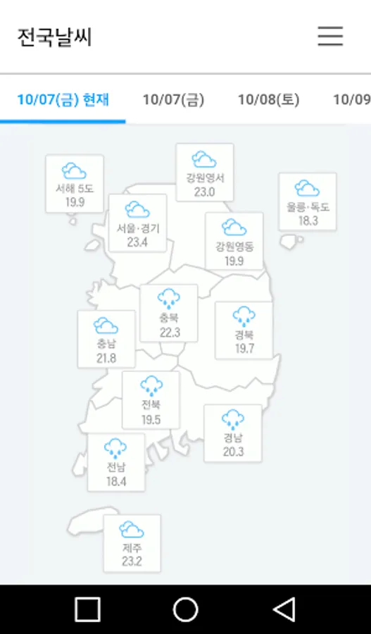 Weatheri provides you with information of 3,773 regions' weather condition for 11 days in the Korea.