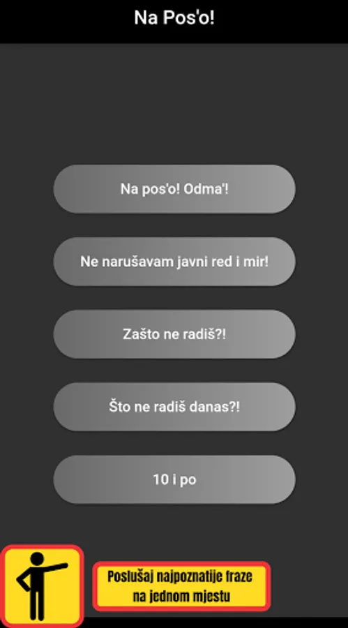 Fraze kao Na Pos'o! Odma'!, Ne narušavam javni red i mir!, Zašto ne radiš?!, Što ne radiš danas?!, 10 i po. Sve na jednom mjestu i na dohvat ruke.