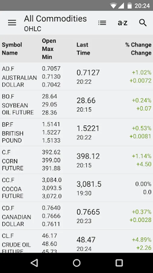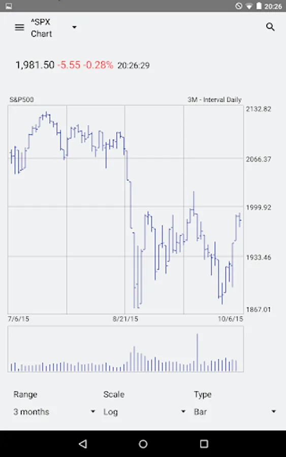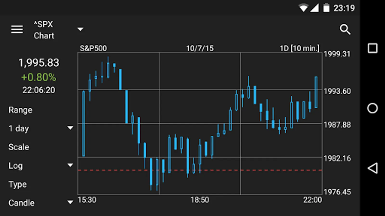 - Charts with volume and open interest, 3 chart types (line, candle, bar), various time ranges (from 1 day to entire history), linear and logarithmic scale